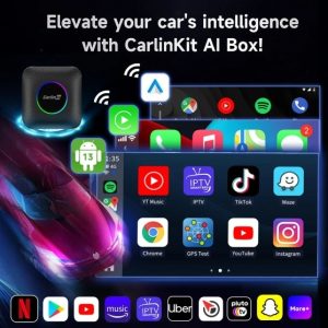 La Carlinkit TBox est une boîte intelligente d’intelligence artificielle qui sert de mise à niveau pour les véhicules équipés d’Apple CarPlay. Il transforme effectivement le système d’infodivertissement de votre voiture en un système d’exploitation Android autonome. Avec la Carlinkit TBox, vous pouvez profiter de fonctions allant au-delà des fonctions CarPlay standard, telles que l’installation et l’exécution d’applications Android directement sur l’écran de votre voiture, la diffusion de vidéos en continu et même la navigation sur Internet.