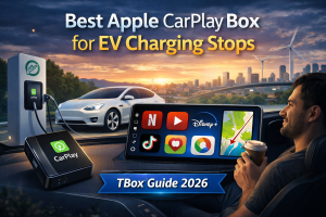 - TBox : Il s’agit de dispositifs plus avancés qui permettent non seulement la connectivité sans fil pour CarPlay et Android Auto, mais qui peuvent également ajouter des fonctions intelligentes au système de votre voiture, telles que la possibilité d’installer et d’exécuter des applications directement à partir de la boîte.