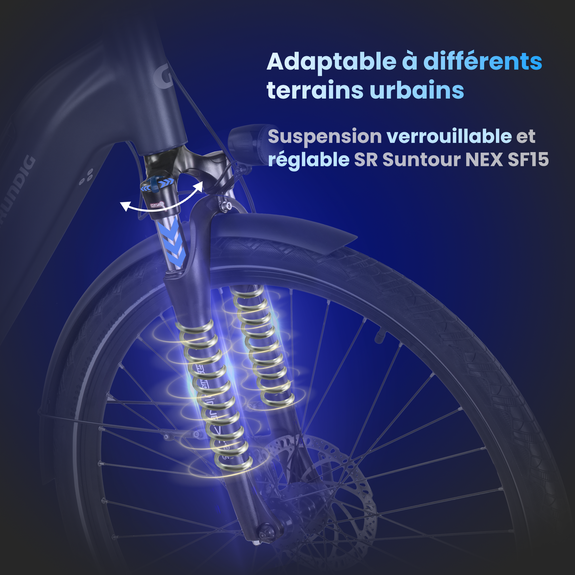 | Fourche suspendue réglable + potence ajustable | Confort optimal grâce à une suspension personnalisable et à une position de conduite adaptable. |